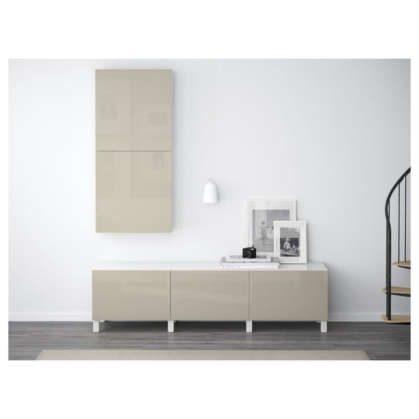Besta Wandschrank Mit 2 Turen Weiss Selsviken Hochglanz Beige